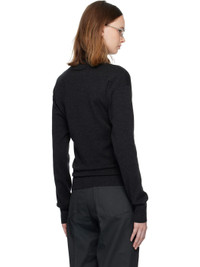 Knit mercerized wool cardigan. · Rib-knit stand collar, hem, and cuffs · Button closure Supplier color: Anthracite melange 100% wool. Made in Portugal 252646F095010