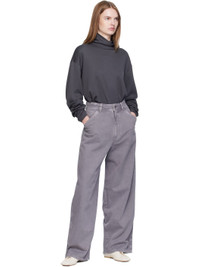 Garment-dyed non-stretch denim jeans. · Wide-leg · Belt loops · Five-pocket styling · Zip fly · Leather logo patch at back waistband Supplier color: Heather Body: 100% cotton. Pocket lining: 100% cotton. Trim: 100% leather. Made in Morocco 252646F069004
