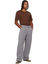 Non-stretch denim jeans. · Garment-dyed · Belt loops · Four-pocket styling · Button fly · Integrated cinch tab and logo patch at back waistband Supplier color: Heather grey 100% cotton. Made in Morocco 252646M186002