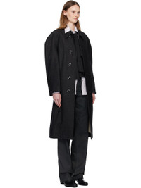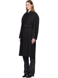 Brushed virgin wool- and cotton-blend twill coat. · RWS-certified wool · Spread collar · Concealed button closure · Welt pockets at front · Belt loops at waist · Detachable pin-buckle belt · Raglan sleeves · Welt pocket at interior · Full cotton twill lining Supplier color: Black/Grey melange Body: 82% virgin wool, 18% cotton. Lining: 100% cotton. Made in Hungary 252646F059002