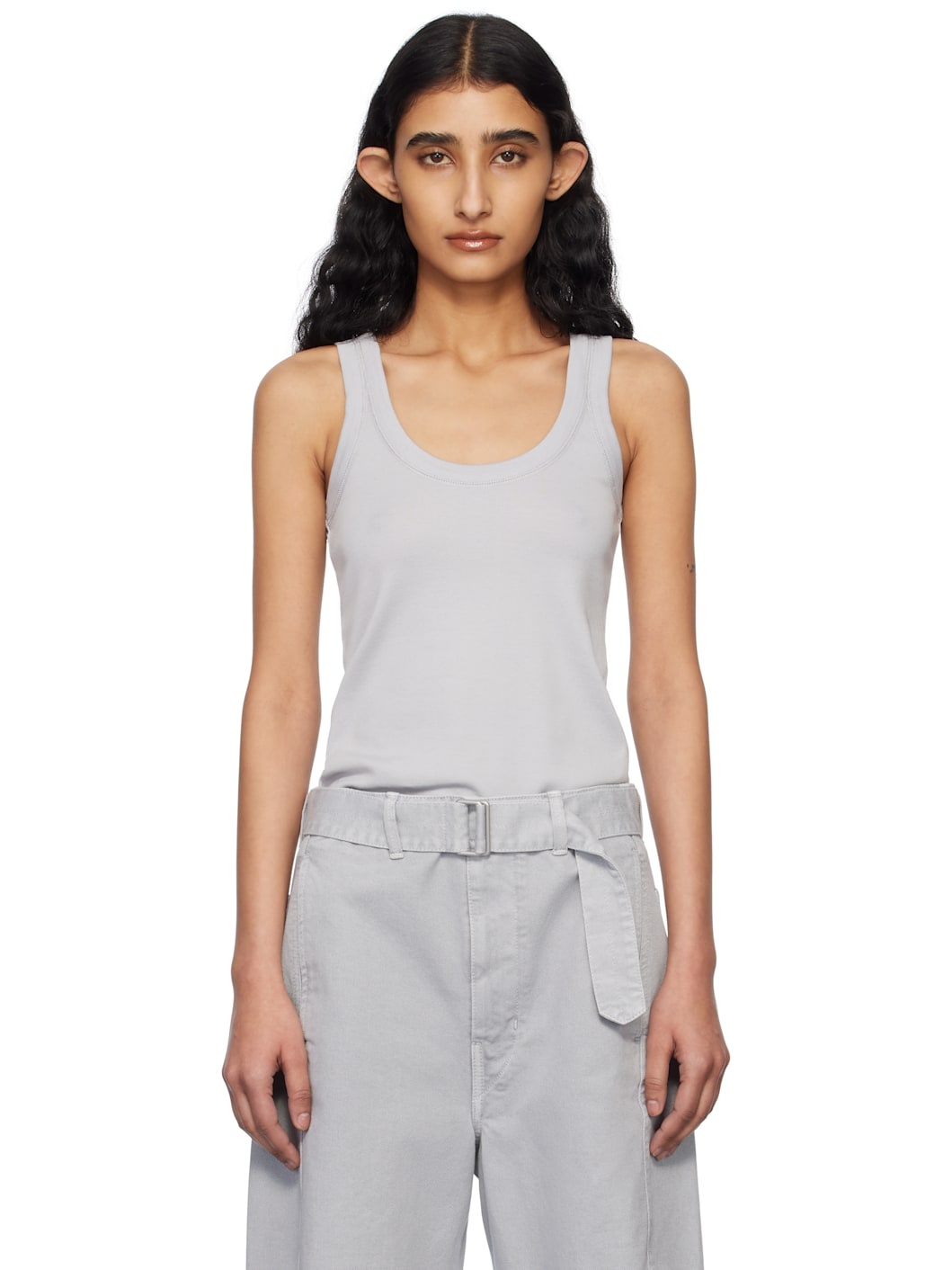Cotton jersey tank top. · Flatlock stitching throughout · Rib-knit scoop neck and armscyes Supplier color: Blue grey 100% cotton. Made in Portugal 251646F111006