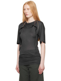 Silk jersey T-shirt. · Self-tie trim at cowl neck · Central seam at sleeves Supplier color: Charcoal 100% silk. Made in Portugal 251646F110012