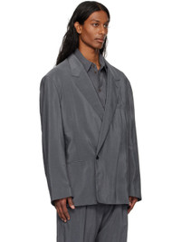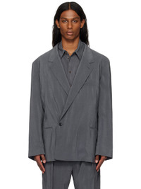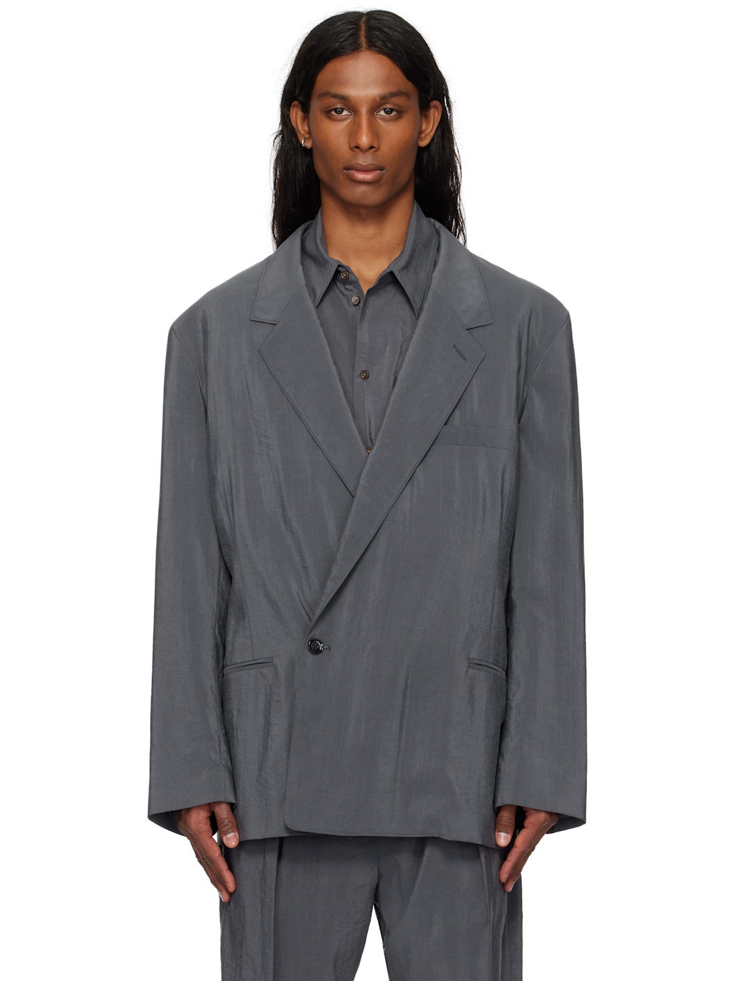 Crinkled plain-woven silk-blend blazer. · Button fastening at notched lapel · Double-breasted button closure · Welt pockets · Dropped shoulders · Welt pockets at interior · Full twill lining · Corozo hardware Supplier color: Asphalt Body: 76% silk, 24% polyamide. Lining: 51% cotton, 49% viscose. Made in Slovakia (Slovak Republic) 251646M180004