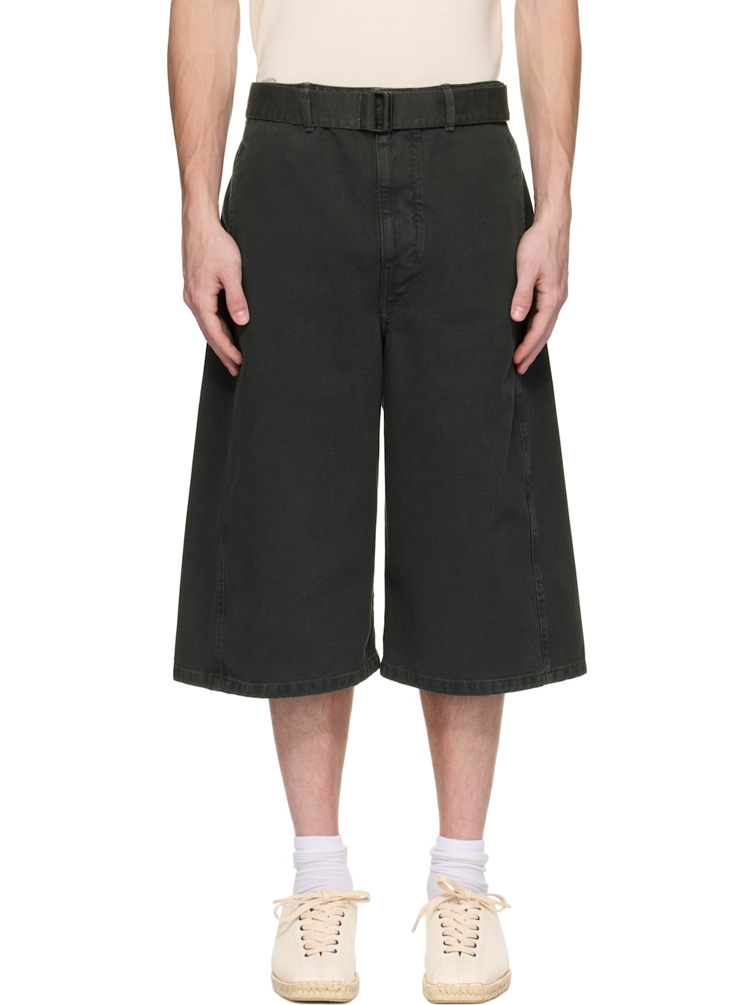 Heavyweight non-stretch denim shorts. Fading throughout. · Garment-dyed · Belt loops and detachable cinch belt · Four-pocket styling · Zip fly · Curved outseams Supplier color: Carbon blue 100% cotton. Made in Morocco 251646M193002