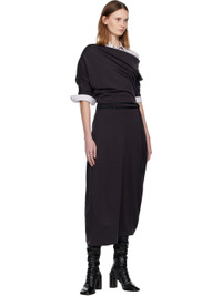 Stretch wool-blend jersey midi dress. · Off-the-shoulder construction · Belt loops at waist · Detachable cinch belt · Twisted detailing at asymmetric hem Supplier color: Anthracite 43% wool, 38% viscose, 14% polyamide, 5% elastane. Made in Portugal 252646F054008