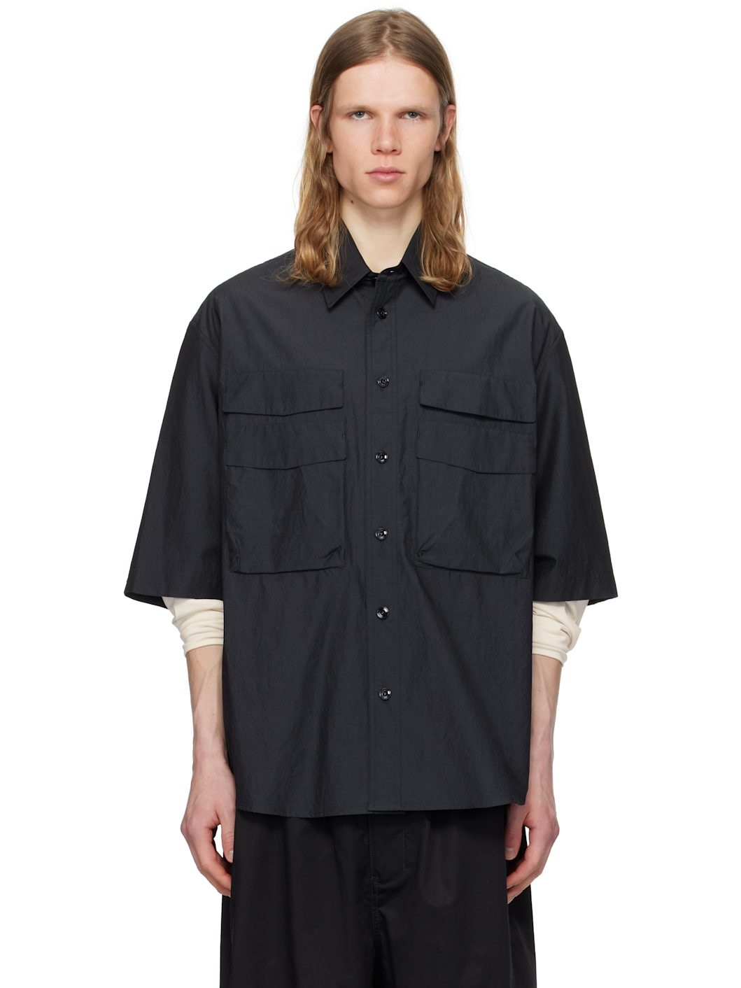 Crinkled cotton crepe shirt. · Spread collar · Button closure · Flap pockets · Shirttail hem · Dropped shoulders · Button fastening at cuffs · Storm flap with concealed vents at back Supplier color: Charcoal 100% cotton. Made in Hungary 251646M192024