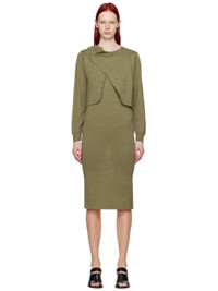 Knit acrylic- and merino wool-blend dress. Offset button closure at integrated cardigan-style overlay. · Layered construction · Crewneck · Rib knit cuffs · Corozo hardware Supplier color: Light olive 50% acrylic, 50% wool. Made in Portugal 241646F054018