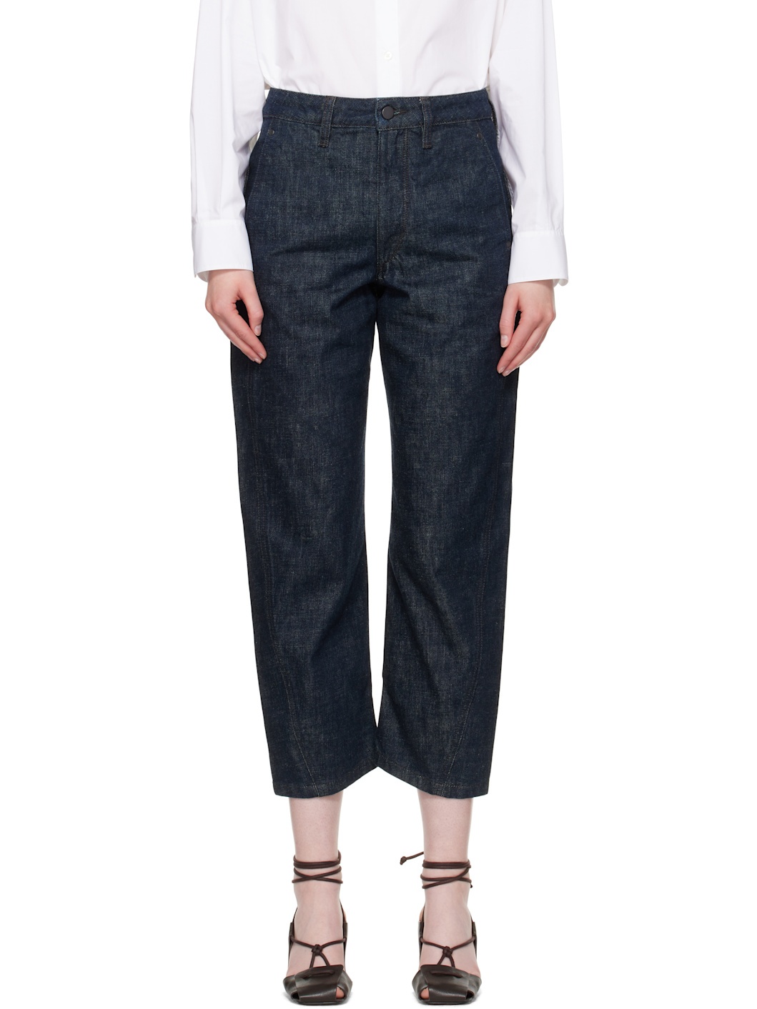 Indigo-dyed non-stretch denim jeans. Fading throughout. · High-rise · Belt loops · Four-pocket styling · Zip fly · Twisted outseams · Darts at back Supplier color: Denim indigo 100% cotton. Made in Morocco 251646F069015