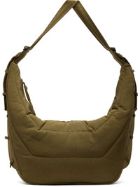 Padded and quilted recycled nylon canvas messenger bag. · GRS-certified recycled nylon · Water-repellent · Adjustable crossbody strap · Lace-up detailing at sides · Zip closure · Zip pocket at interior · H13" x W25" x D6" Supplier color: Dusty Khaki Textile. Made in Italy 252646M170065