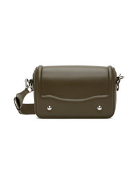 Structured polished vegetable-tanned leather messenger bag in khaki. · Detachable and adjustable crossbody strap · Logo embossed at back face · Magnetic flap · Patch pocket at interior · Canvas lining · H4.5" x W7.5" x D2.5" Supplier color: Khaki moss