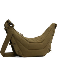 Padded and quilted nylon canvas shoulder bag. · Water-repellent · Adjustable crossbody strap · Lace-up detailing at sides · Zip closure · Zip pocket at interior · Nylon canvas lining · H7" x W12" x D4" Supplier color: Dusty khaki Textile. Made in Italy 252646F048061