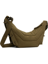 Padded and quilted nylon canvas messenger bag. · Water-repellent · Adjustable crossbody strap · Lace-up detailing at sides · Zip closure · Zip pocket at interior · Nylon canvas lining · H7" x W12" x D4" Supplier color: Dusty khaki Textile. Made in Italy 252646M170067