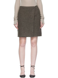Felted wool- and alpaca-blend broadcloth miniskirt. · Wrap construction · Button fastenings at waistband · Unlined Supplier color: Dark khaki Body: 50% wool, 50% alpaca. Trim: 100% cotton. Made in Romania 252646F090000