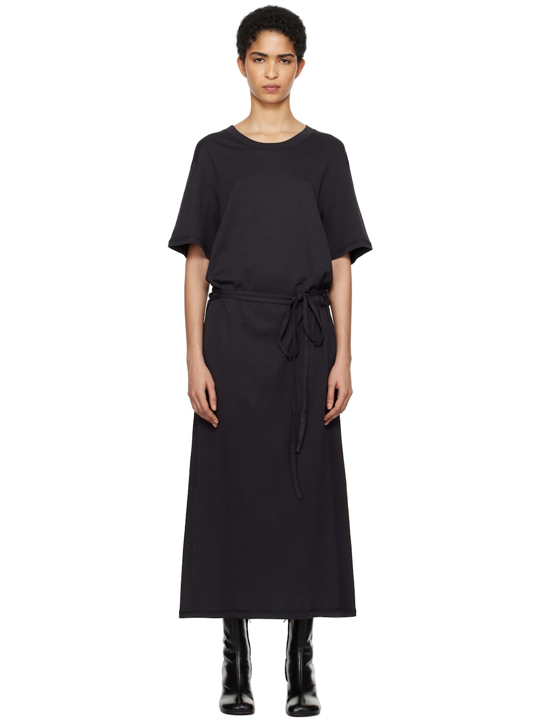 Cotton jersey midi dress. · Rib-knit crewneck · Detachable self-tie belt · Dropped shoulders Supplier color: Squid ink 100% cotton. Made in Portugal 242646F054011