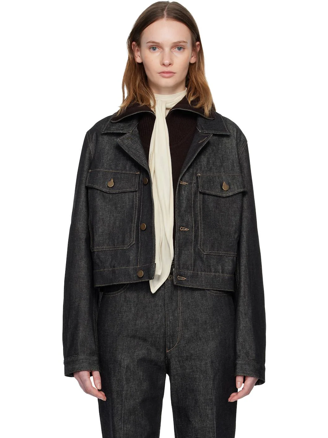 Non-stretch denim jacket. · Spread collar · Button closure · Flap pockets at chest · Pleats at buttoned barrel cuffs · Pleats and adjustable button tabs at back hem Supplier color: Slate 100% cotton. Made in Italy 252646F060005