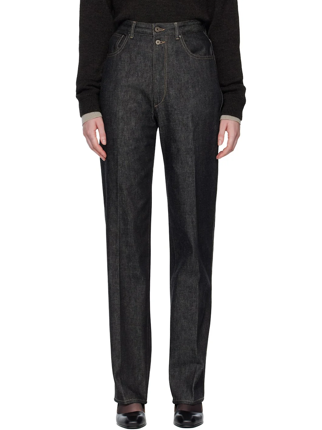 Non-stretch denim jeans. · Yarn-dyed · Straight-leg · High-rise · Five-pocket styling · Zip fly · Logo patch at back waistband · Contrast stitching in tan Supplier color: Slate Body: 100% cotton. Pocket lining: 65% polyester, 35% cotton. Made in Italy 252646F069002