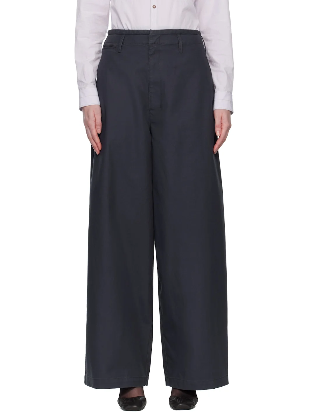 Heavyweight cotton twill trousers. · Belt loops · Five-pocket styling · Zip fly Supplier color: Graphite blue 100% cotton. Made in Romania 252646F087004