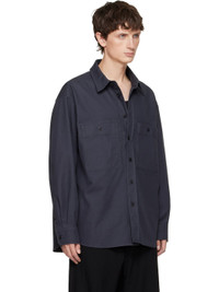 Rinse-treated cotton twill shirt. · Spread collar · Button closure · Patch pockets at chest · Shirttail hem · Buttoned barrel cuffs · Box pleat at back yoke · Contrast stitching in gray Due to the unique dyeing processes, a patina will develop with wear. Supplier color: Graphite blue 100% cotton. Made in Romania 252646M192012