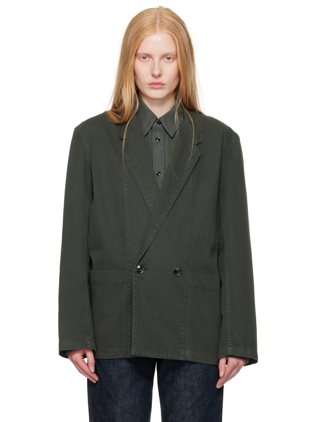 Garment-dyed non-stretch denim blazer. · Notched lapel · Button closure · Patch pockets · Patch pocket at interior · Unlined · Corozo hardware Supplier color: Carbon blue 100% cotton. Made in Morocco 251646F057001