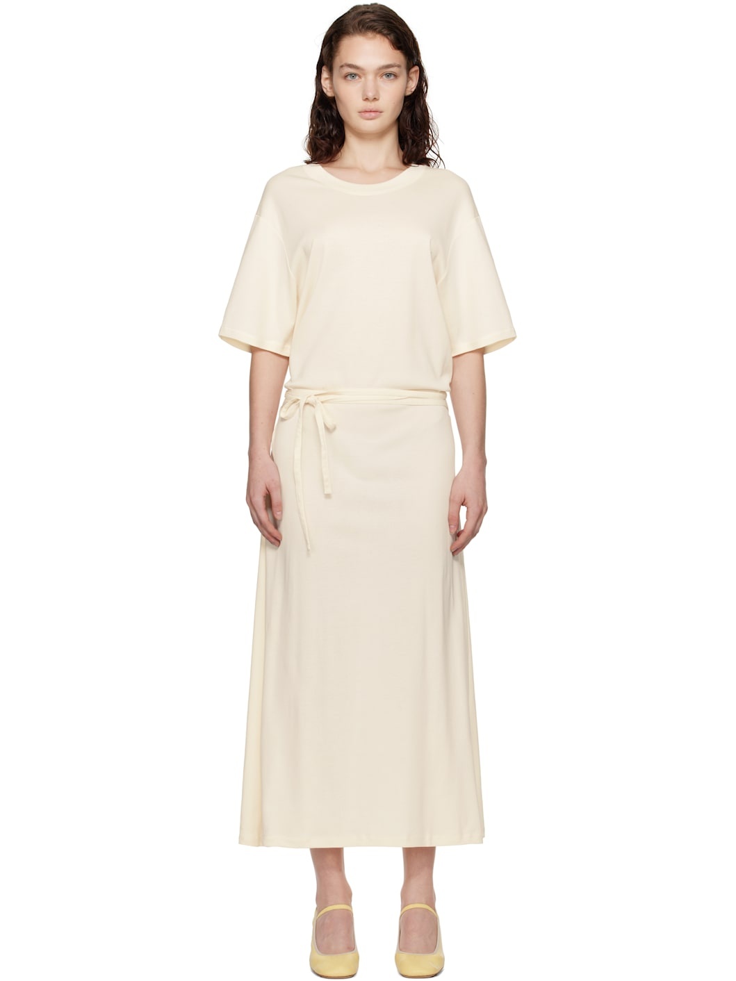 Cotton jersey midi dress. · Rib-knit crewneck · Detachable self-tie belt · Dropped shoulders Supplier color: Light cream 100% cotton. Made in Portugal 242646F054009