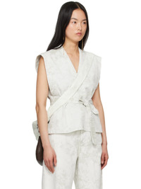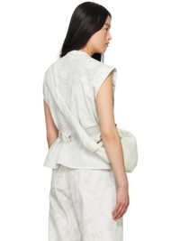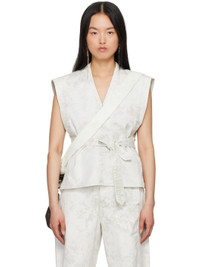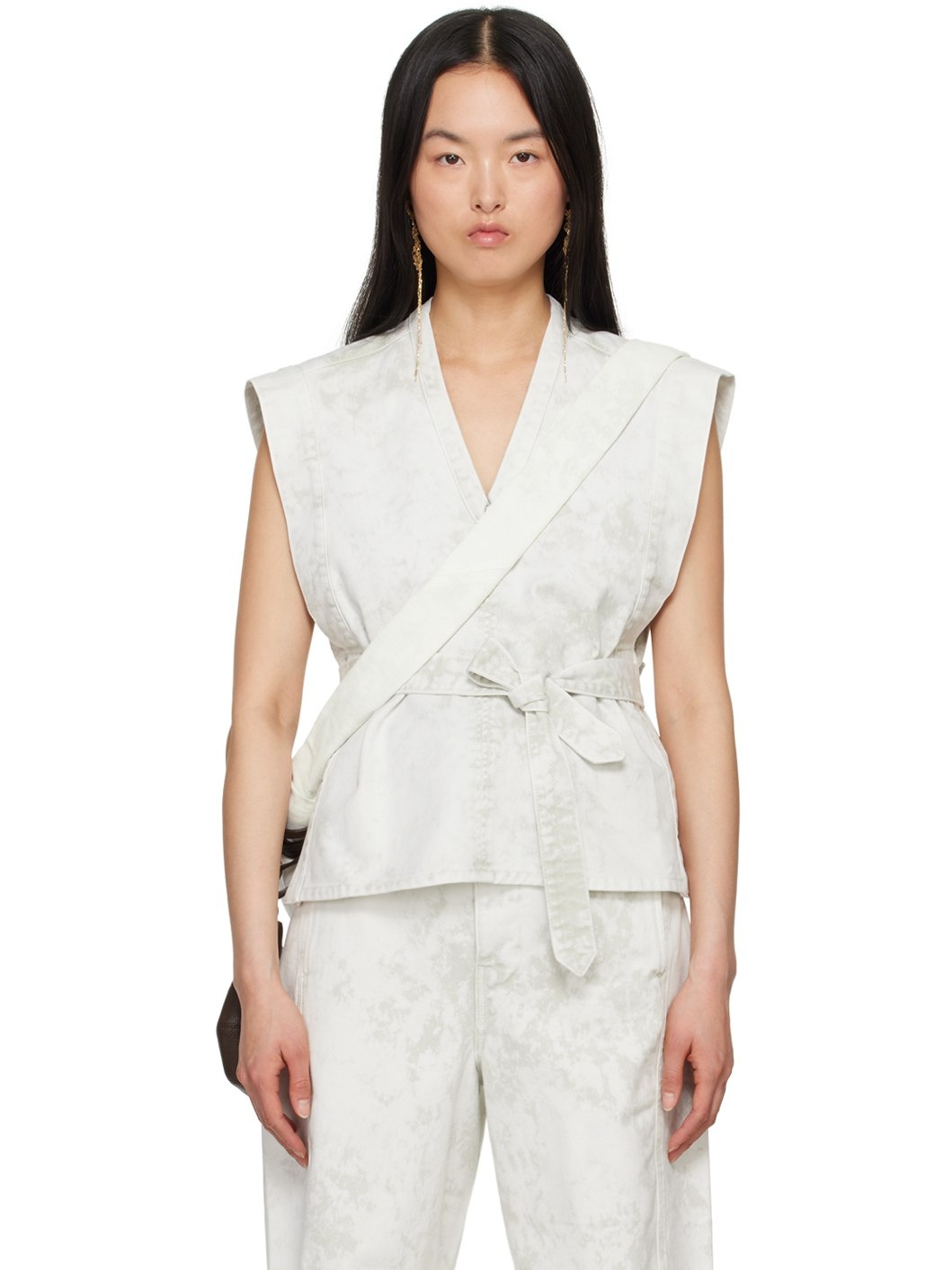 Garment-dyed acid-washed non-stretch denim vest. · V-neck · Detachable self-tie belt at waist · Cropped hem · Vent at side seams · Belt loop at back waist Each item is unique. Please note that coloration may vary. Supplier color: Denim acid snow 100% cotton. Made in Morocco 241646F107005