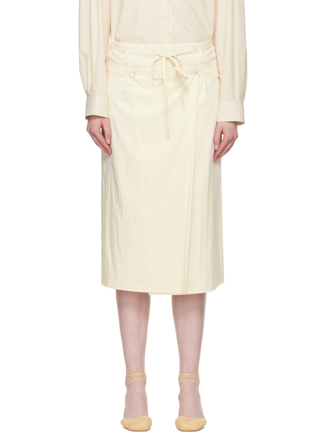 Lyocell-blend poplin midi skirt. · Layered construction · Belt loops · Detachable self-tie belt · Zip fly · Draped paneling with button fastening at front · Central vent at back hem · Partial cotton twill lining · Corozo hardware Supplier color: Creamy white Body: 69% lyocell, 31% polyamide. Lining: 100% cotton. Made in Portugal 251646F092003
