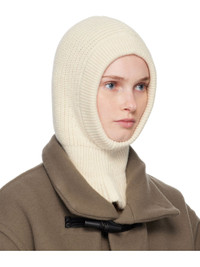 Knit alpaca- and wool-blend balaclava. Rib-knit trim at face and collar. Supplier color: Light cream 45% acrylic, 40% alpaca, 15% wool. Made in Portugal 252646F014007