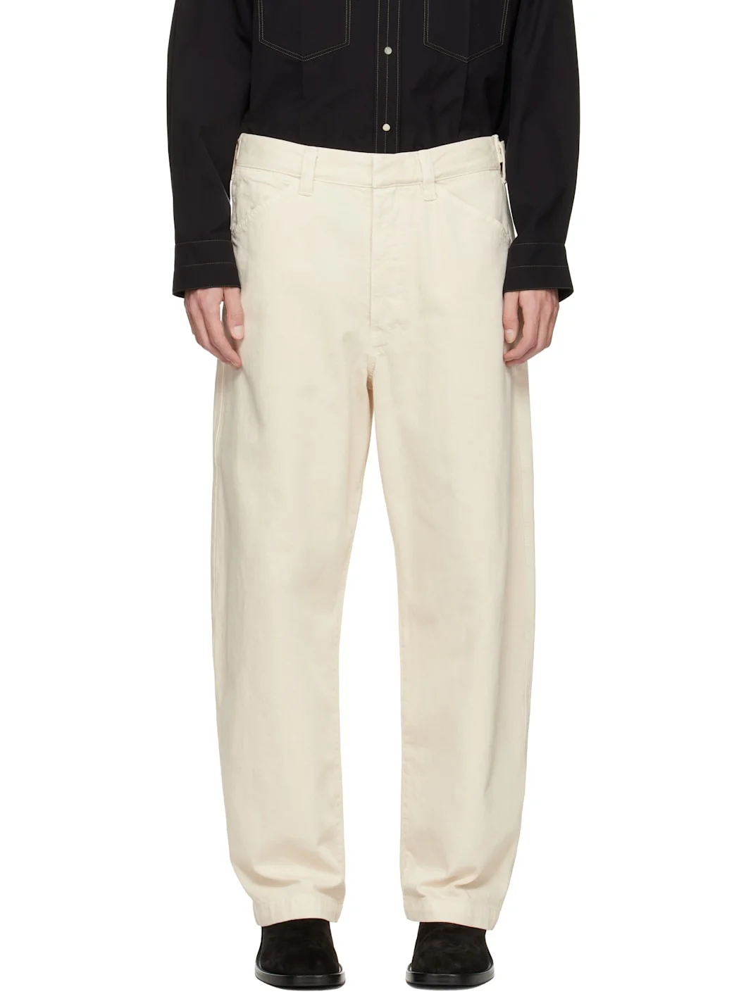 Non-stretch denim jeans. · Garment-dyed · Wide-leg · Belt loops with detachable cinch belt · Four-pocket styling · Button fly · Leather logo patch at back waistband Color: Denim snow clay Body: 100% cotton. Pocket lining: 100% cotton. Trim: 100% cow leather. Made in Morocco 252646M186000
