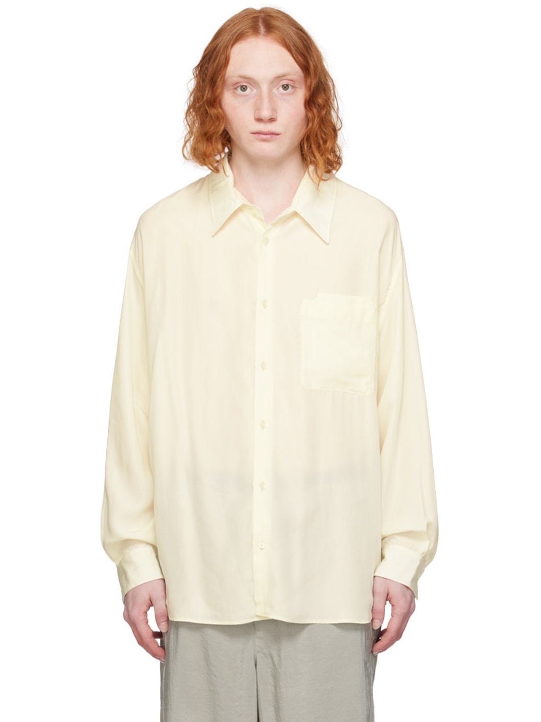Lyocell poplin shirt. · Spread collar · Button closure · Patch pockets at chest · Shirttail hem · Adjustable single-button barrel cuffs · Box pleat at back yoke · Mother-of-pearl hardware Supplier color: White asparagus 100% lyocell. Made in Italy 241646M192027