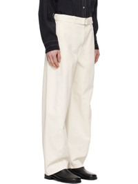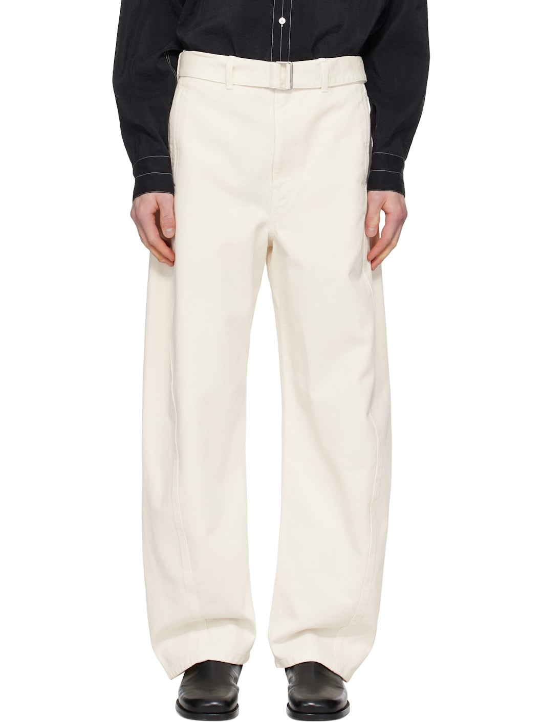 Heavyweight garment-dyed non-stretch denim jeans. · Mid-rise · Belt loops · Detachable cinch belt · Four-pocket styling · Zip fly · Twisted outseams Supplier color: Snowy off white 100% cotton. Made in Morocco 251646M186003