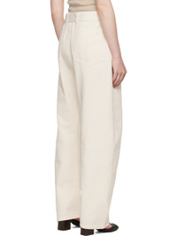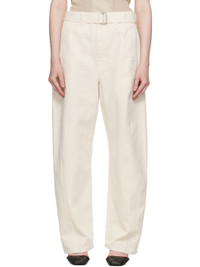 Heavyweight garment-dyed non-stretch denim jeans. · Mid-rise · Belt loops · Detachable cinch belt at waistband · Four-pocket styling · Zip fly · Twisted outseams Supplier color: Snowy off white 100% cotton. Made in Morocco 251646F069008