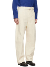 Non-stretch denim jeans. · Garment-dyed · Wide-leg · Belt loops with detachable cinch belt · Four-pocket styling · Zip fly · Leather logo patch at back waistband Supplier color: Denim snow clay Body: 100% cotton. Pocket lining: 100% cotton. Trim: 100% cow leather. Made in Morocco 252646M186001