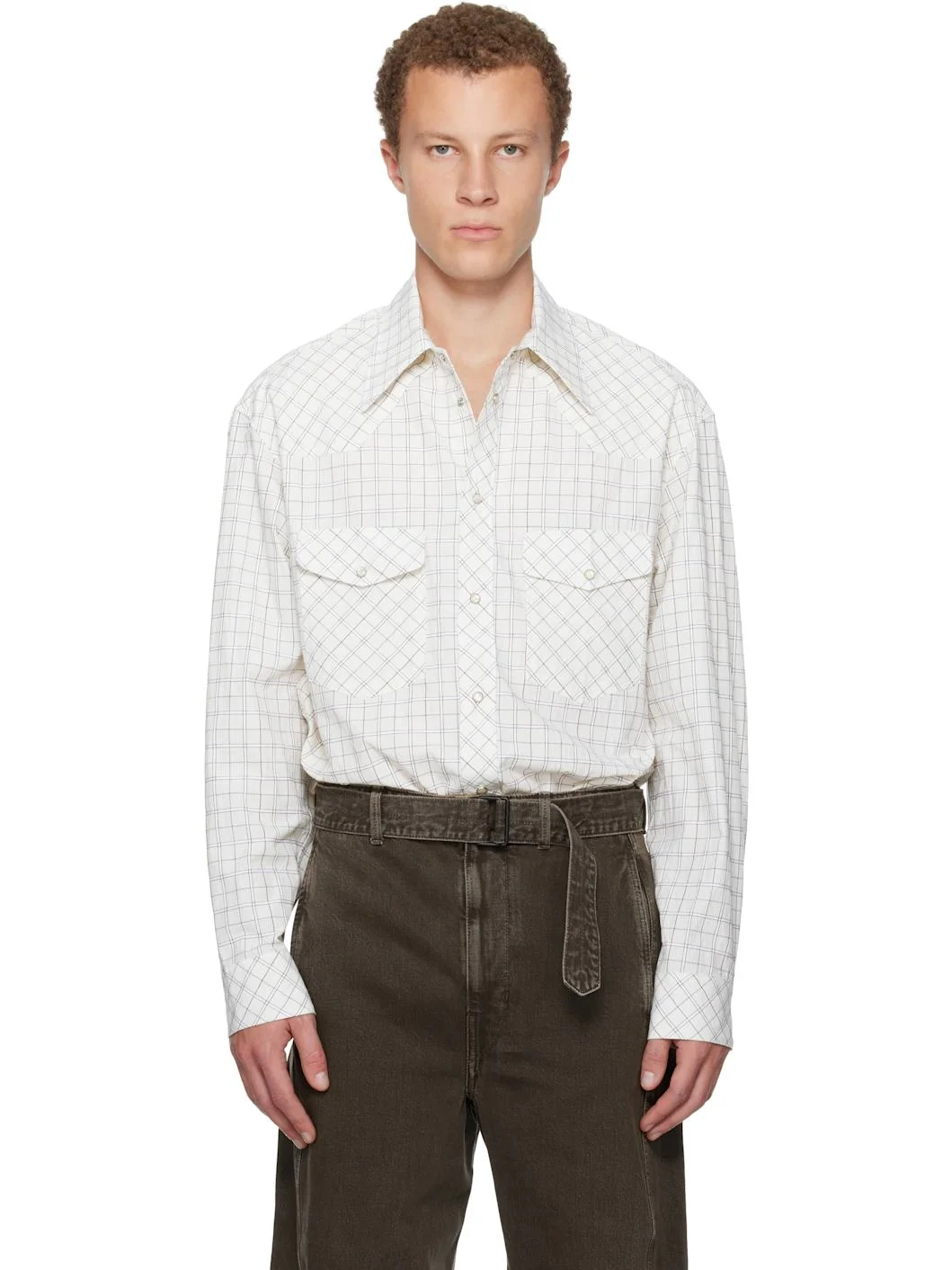 Plain-woven cotton shirt. · Check pattern throughout · Spread collar · Press-stud closure · Western-style front yoke · Flap pockets at chest · Shirttail hem · Press-stud barrel cuffs · Box pleat at back yoke Supplier color: Off white/Multicolor 100% cotton. Made in Tunisia 252646M192015