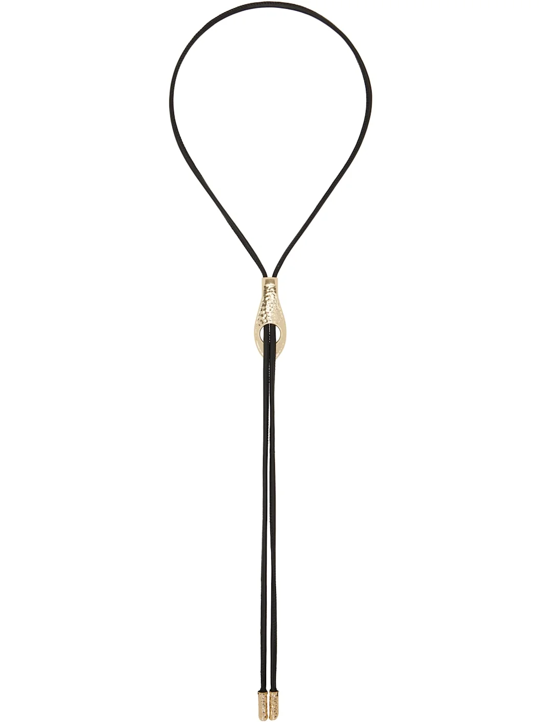 Buffed nappa lambskin bolo tie-style necklace in black. · Pull-through fastening · Antiqued gold-tone brass hardware · L36" Supplier color: Light Gold Lambskin, brass. Made in France 261646F023003