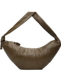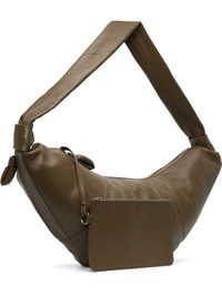 Nappa lambskin messenger bag. · Fixed knotted crossbody strap · Zip pocket with padded pull-tab at side · Padded pull-tab at zip closure · Patch pocket at interior · Detachable zip pouch-on-lanyard at interior · Cotton canvas lining · H11" x W23" x D2.5" Supplier color: Dark Khaki Lambskin. Made in Spain 252646M170027