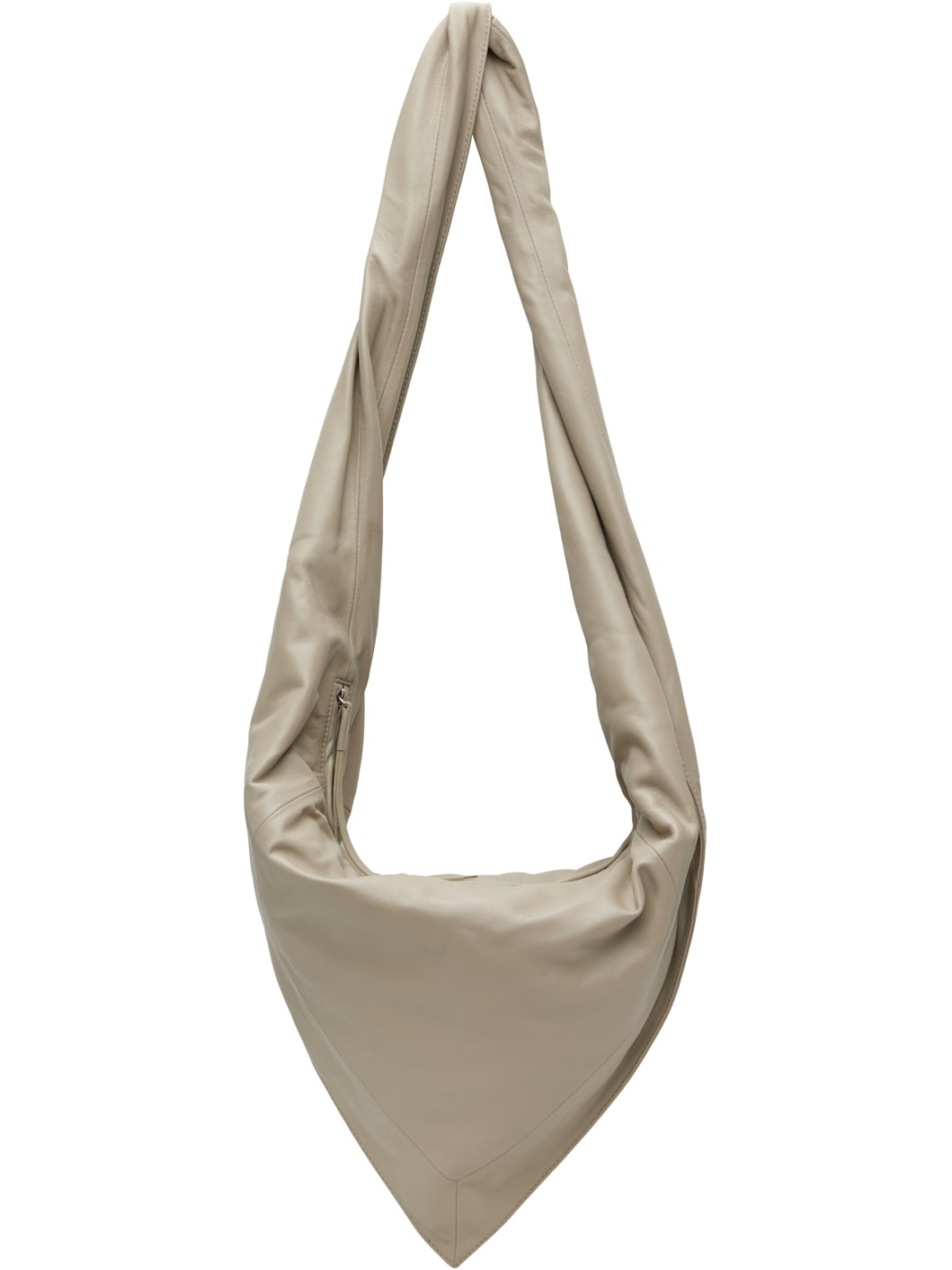 Grained nappa sheepskin shoulder bag. · Twisted crossbody strap · Zip closure · Zip pocket at interior · Grained sheepskin lining · H13.5" x W26" Supplier color: Stone Sheepskin. Made in Spain 252646F048052