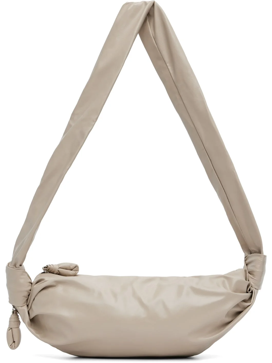 Crinkled leather shoulder bag. · LWG-certified leather · Knotted detailing at crossbody strap · Padded pull-tab and zip pocket at side · Padded pull-tab at zip closure · Zip pocket at interior · Cotton twill lining · H7.5" x W14" x D2" Supplier color: Light mastic Leather. Made in Tunisia 252646F048049