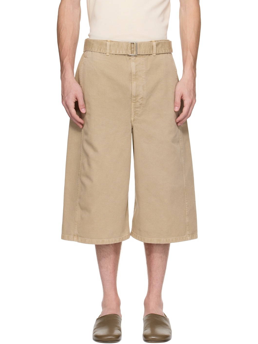 Heavyweight non-stretch denim shorts. Fading throughout. · Garment-dyed · Belt loops and detachable cinch belt · Four-pocket styling · Zip fly · Curved outseams Supplier color: Natural beige 100% cotton. Made in Morocco 251646M193000