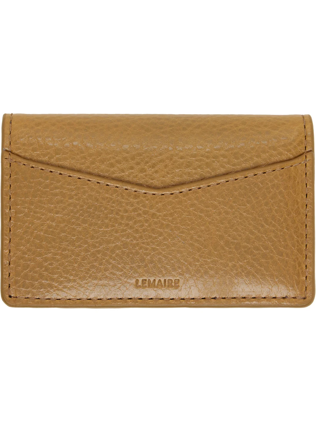 Vegetable-tanned grained leather bifold card holder. · Card slot and embossed logo at back face · Six card slots and two patch pockets at interior · H2.5" x W4.25" x D0.5" Supplier color: Smoked Ochre Leather. Made in Spain 261646M163000