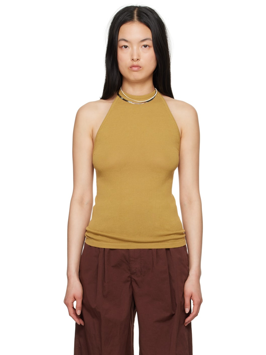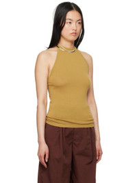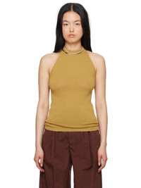 Knit cotton tank top. · Rib knit crewneck and armscyes · Self-tie halter strap · Low back · Logo-engraved gold-tone hardware Supplier color: Ochre mustard 100% cotton. Made in Italy 241646F111008
