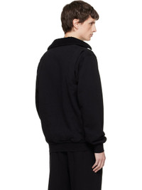 Heavyweight brushed cotton fleece polo. · Pre-shrunk and garment-dyed · Spread collar · Open placket · Rib-knit hem and cuffs Supplier color: Jet black 100% cotton. Made in United States 261548M212002