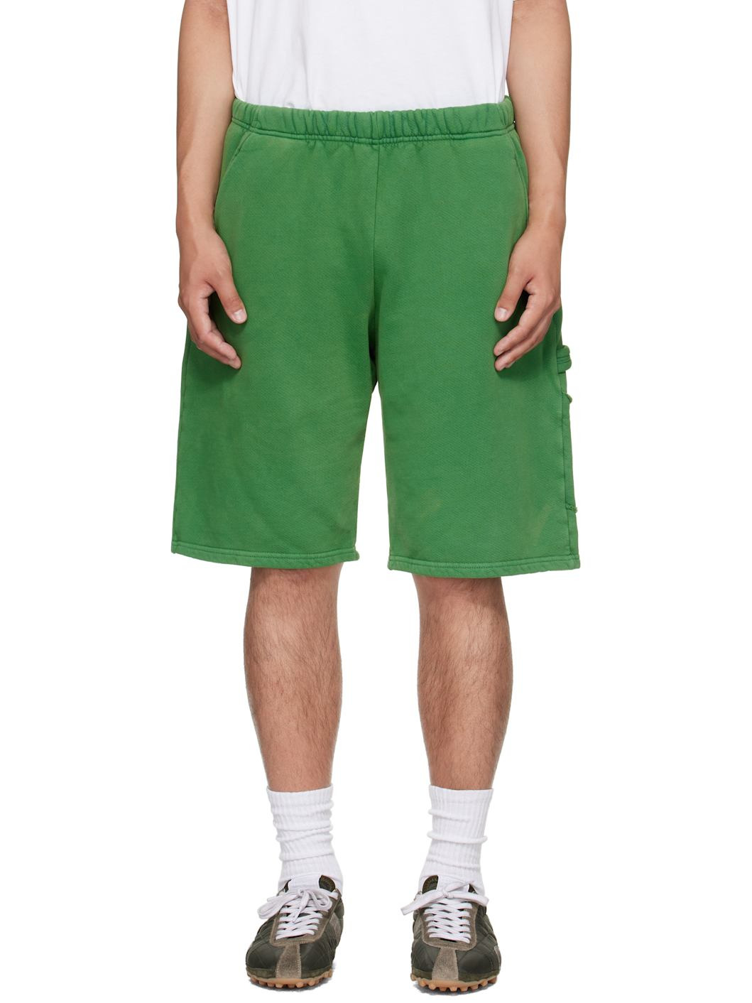 Heavyweight brushed cotton fleece shorts. · Pre-shrunk and garment-dyed · Fading throughout · Concealed drawstring at elasticized waistband · Four-pocket styling · Hammer loop and patch pocket at outseam · Rolled raw edges at back pockets Supplier color: Washed basil 100% cotton. Made in United States 252548M193003