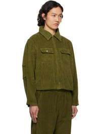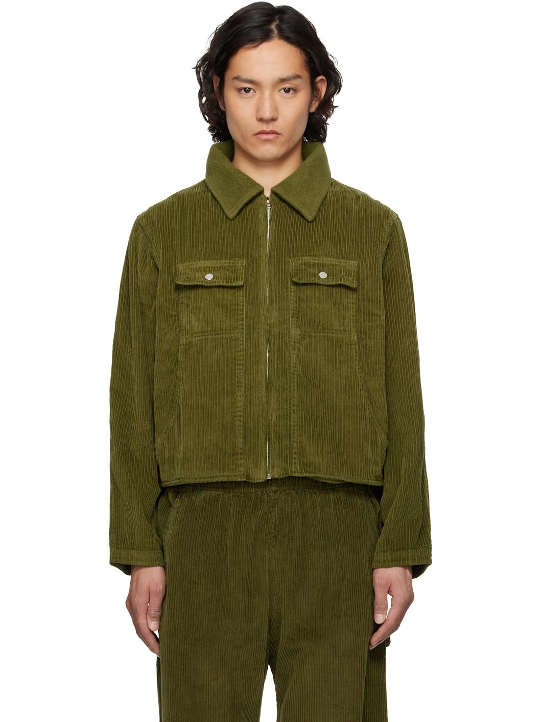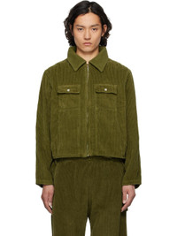 Cotton corduroy jacket. · Fleece spread collar · Zip closure · Flap pockets and patch pockets · Cropped hem · Pleats at sleeves and back · Full twill lining Supplier color: Olive stone 100% cotton. Made in United States 251548M180006