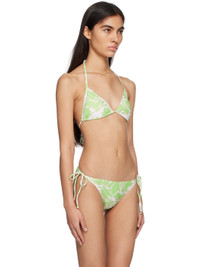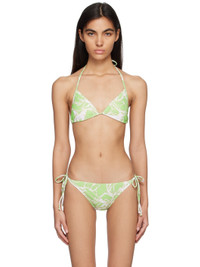 Stretch polyester jersey bikini top. Graphic pattern printed throughout. · Plunging V-neck · Removable padding at cups · Self-tie halter strap · Self-tie fastening at back · Fully lined Supplier color: Green Body: 85% polyester, 15% elastane. Lining: 86% polyester, 14% elastane. Made in South Korea 231732F105000