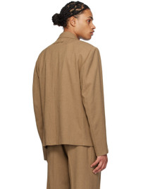 Stretch polyester twill blazer. · Notched lapel · Single-button closure · Welt pocket and flap pockets · Padded shoulders · Creased sleeves · Locker loop at back collar · Central vent at back hem · Full satin lining Supplier color: Camel Body: 98% polyester, 2% polyurethane. Lining: 50% polyester, 50% rayon. Made in South Korea 241732M195003