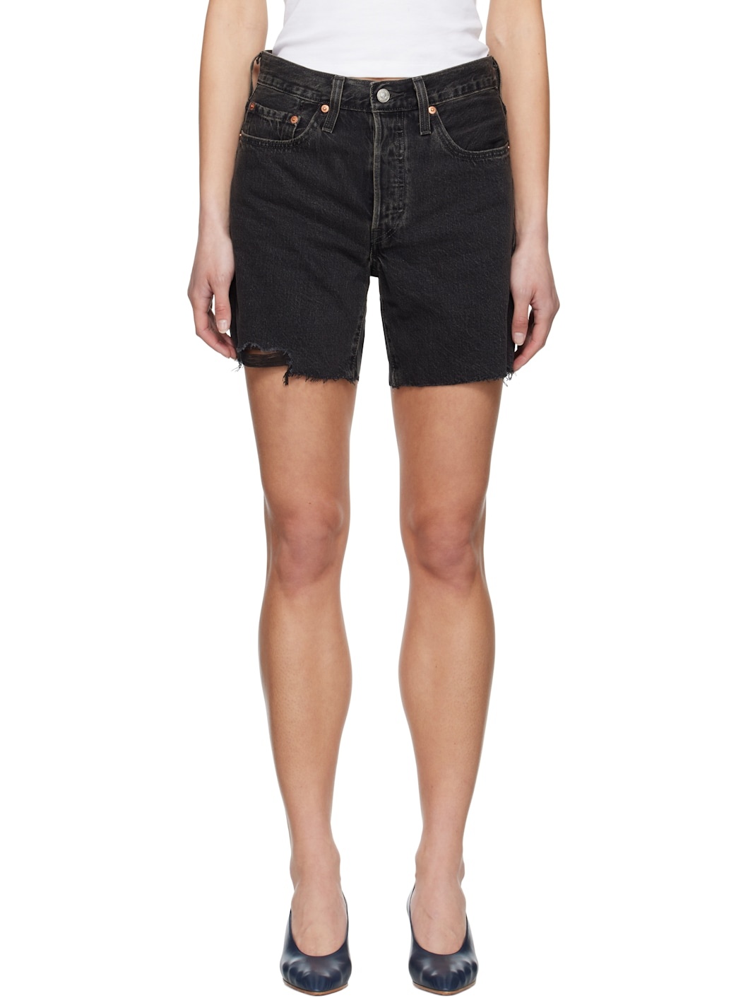 Black 501 Mid Thigh Denim Shorts