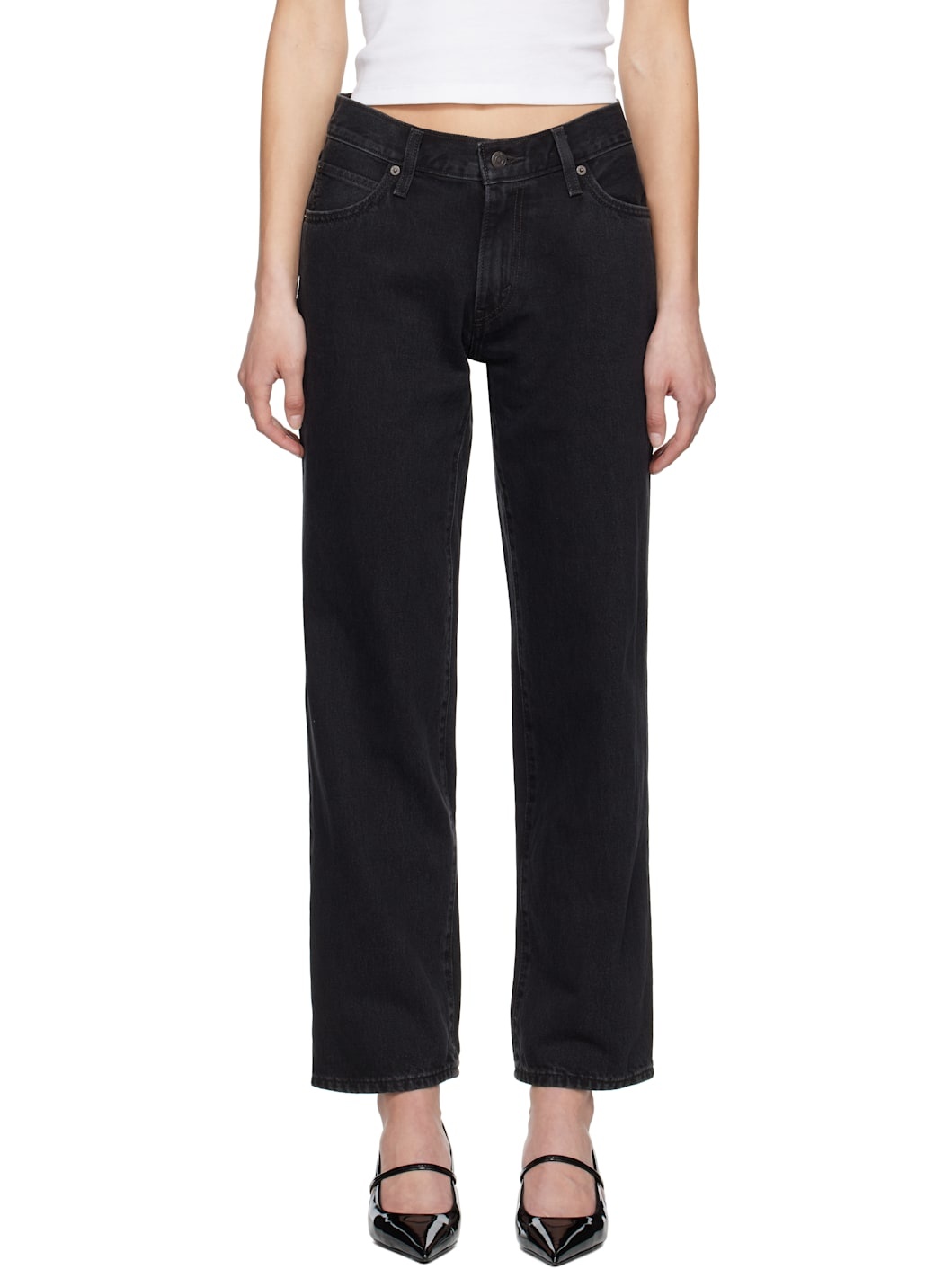 Loose-fit and straight-leg non-stretch denim jeans. Fading throughout. · Mid-rise · Belt loops · Five-pocket styling · Zip fly · Leather logo patch at back waistband · Logo flag at back pocket · Logo-engraved antiqued copper-tone hardware · Contrast stitching in tan Supplier color: Open mind 100% cotton. Made in Sri Lanka 251099F069014