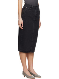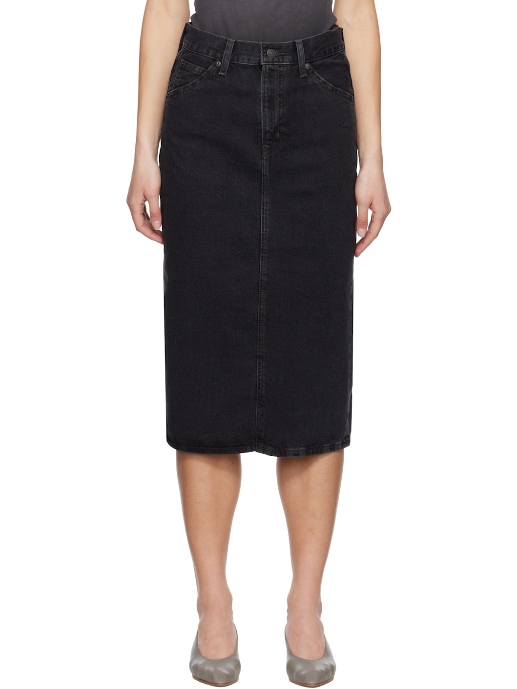 Slim-fit non-stretch denim midi skirt. Fading throughout. · High-rise · Belt loops · Five-pocket styling · Zip fly · Jacron logo patch at back waistband · Logo flag at back pocket · Central vent at back hem · Logo-engraved antiqued bronze-tone hardware Supplier color: Open mind/Black 100% cotton. Made in Pakistan 251099F090001