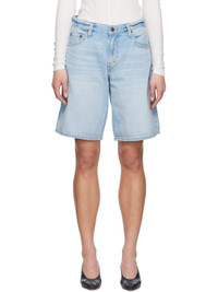 Baggy-fit non-stretch denim shorts. Fading and whiskering throughout. · Mid-rise · Belt loops · Five-pocket styling · Zip fly · Leather logo patch at back waistband · Logo flag at back pocket · Logo-engraved antiqued bronze-tone hardware · Contrast stitching in beige Supplier color: Pick sides 100% cotton. Made in Cambodia 251099F088016