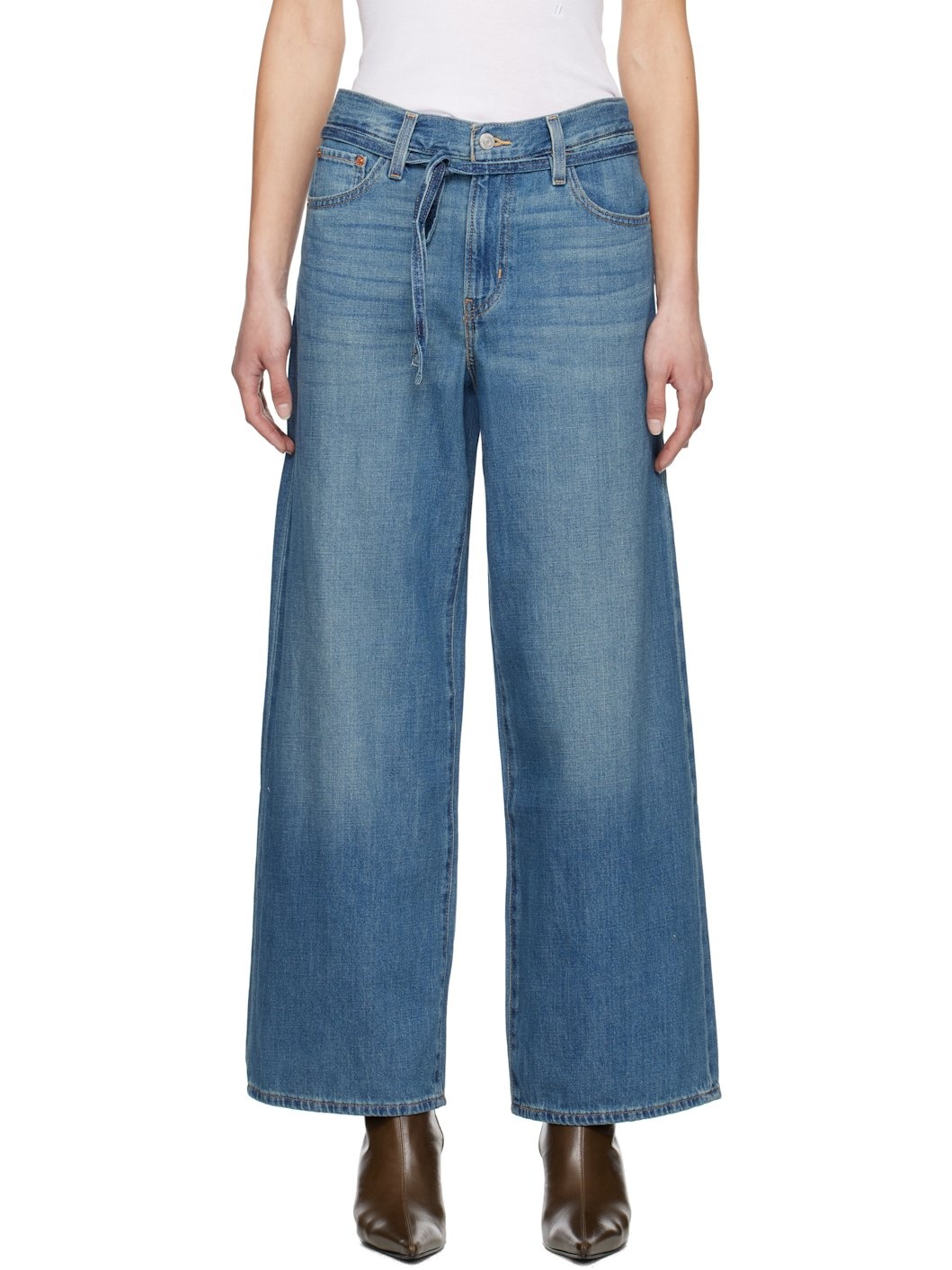 Lightweight non-stretch cotton- and linen-blend denim jeans. Fading and whiskering throughout. · Oversized and straight-leg · Mid-rise · Belt loops · Detachable self-tie belt · Five-pocket styling · Zip fly · Logo patch at back waistband · Logo flag at back pocket · Logo-engraved silver- and copper-tone hardware · Contrast stitching in tan Supplier color: Stop flaxing 85% cotton, 15% linen. Made in Sri Lanka 251099F069060